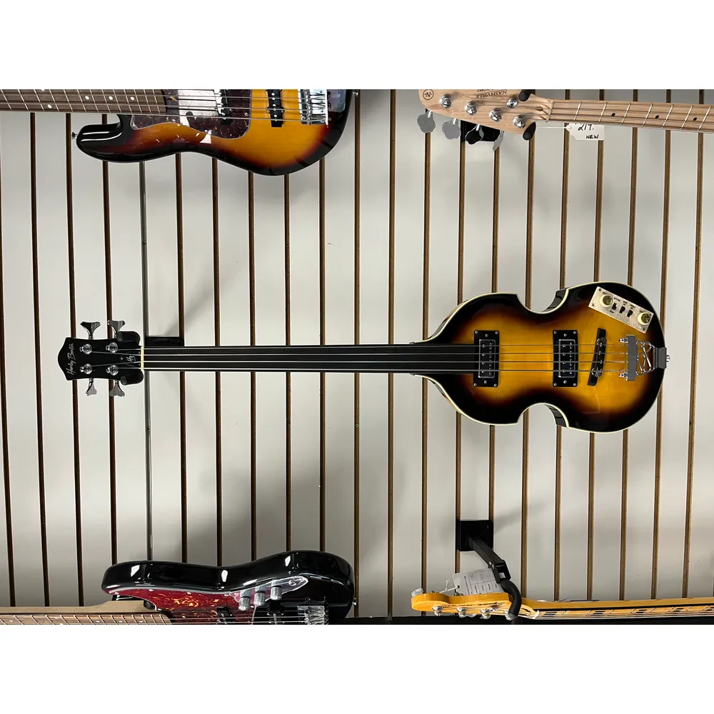 In excellent condition. Very little play time. Has Labella flat wound strings, upgraded Hofner bridge, upgraded staple pickups, upgraded knobs. Also includes hardshell case. All original hardware is included.