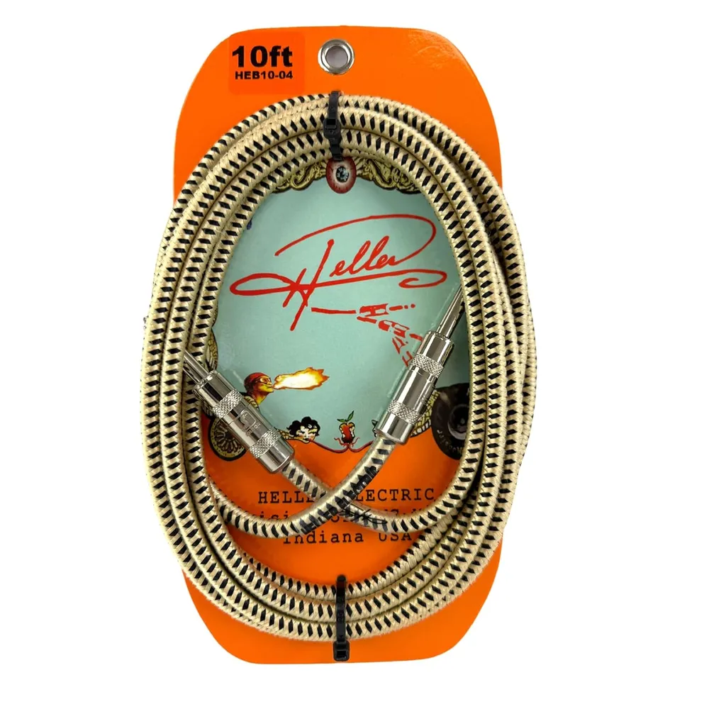 Heller Electric Braid-Matrix Guitar Cable, 10ft, Gold & Black Tweed, 1/4" Straight-to-Straight, 20AWG OFC, 99% Shielded, Professional Grade