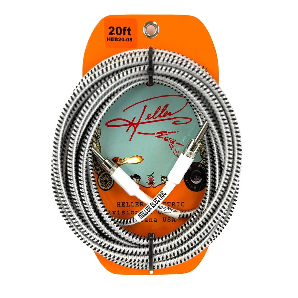 Heller Electric Braid-Matrix Guitar Cable, 20ft, Silver & Black Tweed, 1/4 Straight-to-Straight, 20AWG OFC, 99% Shielded, Professional Grade