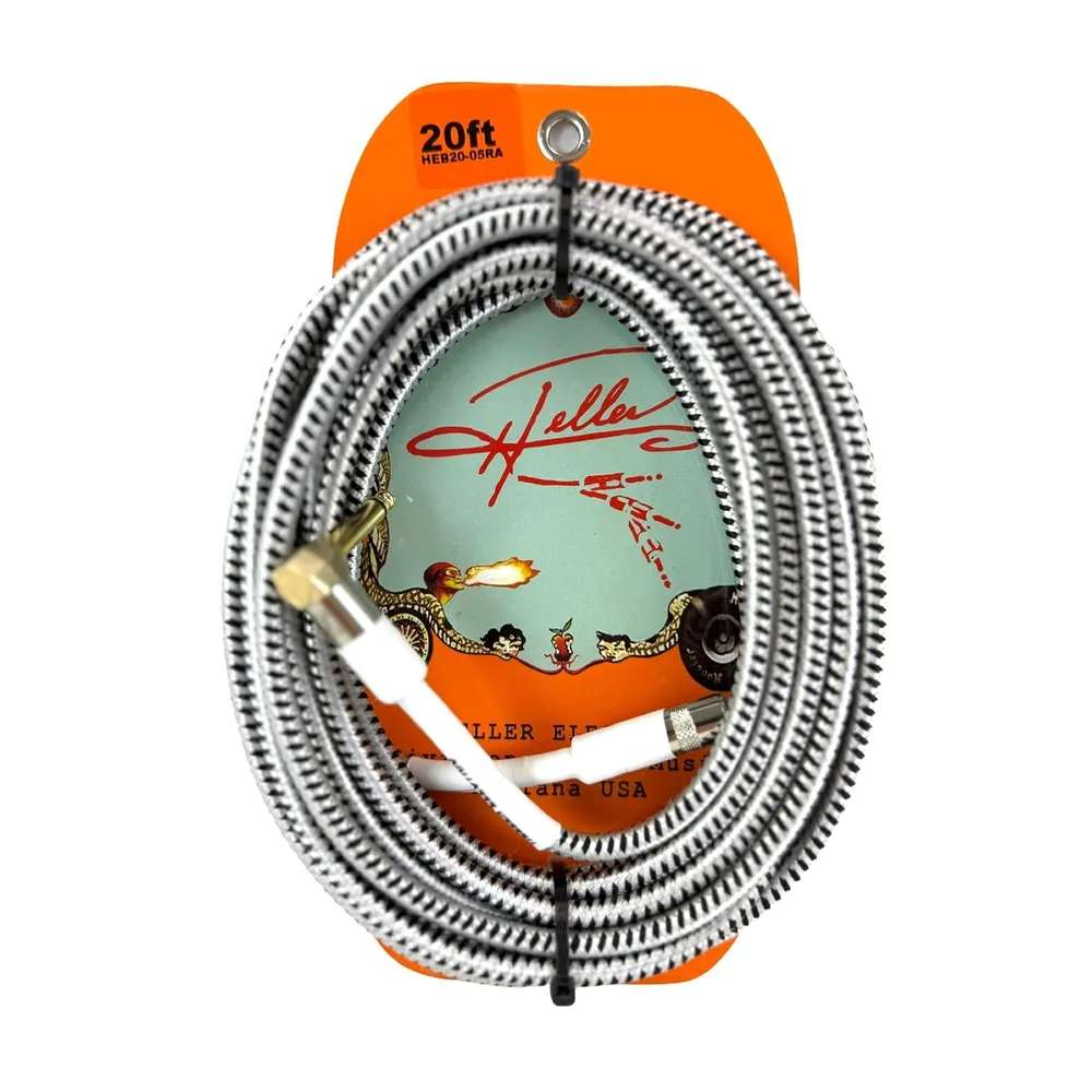Heller Electric Braid-Matrix Guitar Cable, 20ft, Black & Silver Tweed, 1/4 Straight-to-Straight, 20AWG OFC, 99% Shielded, Professional Grade
