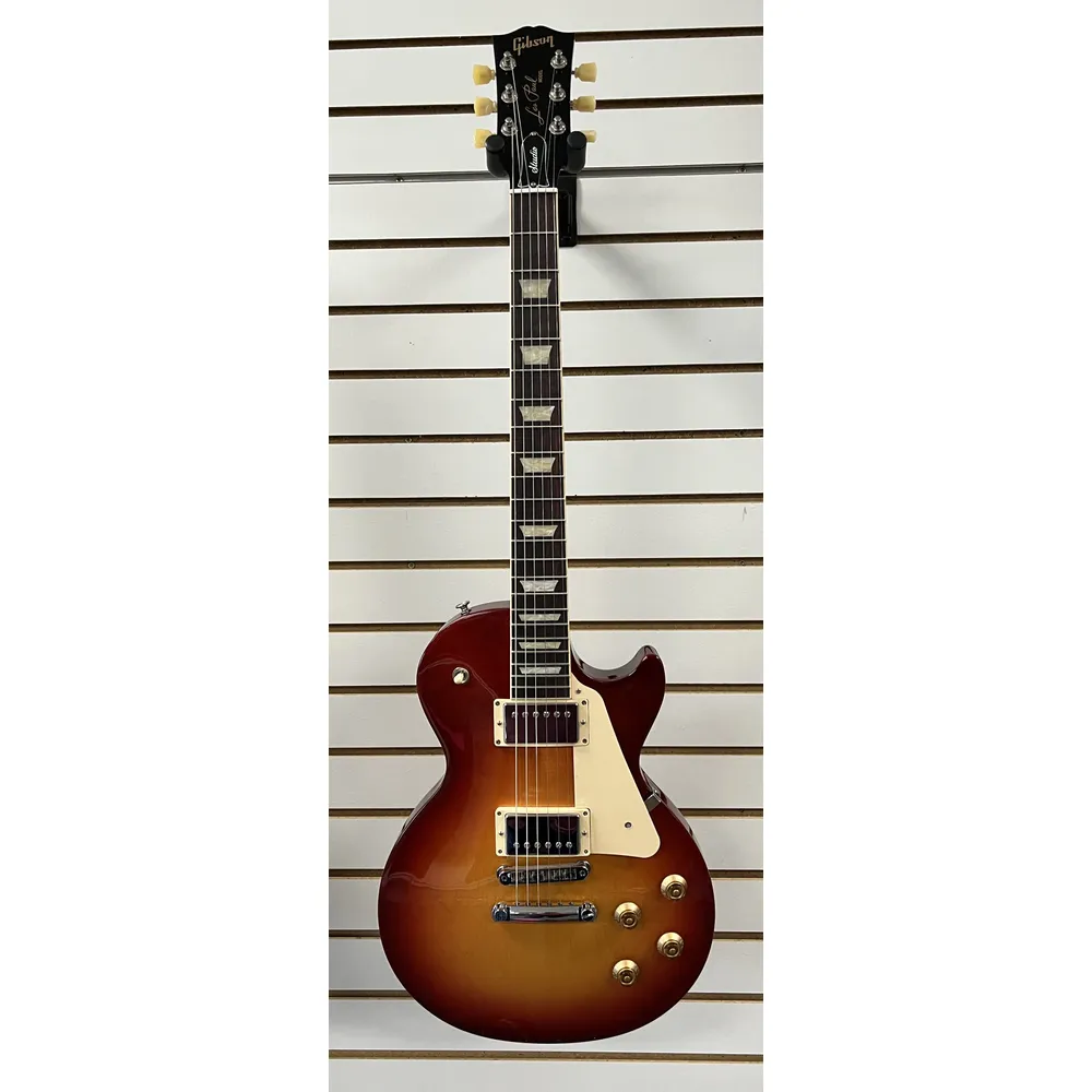 - Head-turning acrylic trapezoid fingerboard inlays, “Les Paul Model” headstock overlay, and Gibson logo headstock inlay