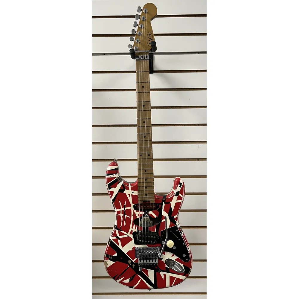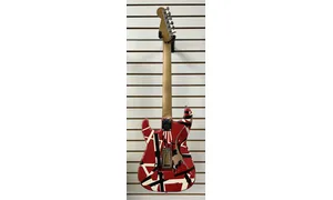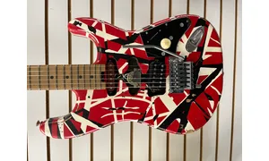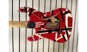 The EVH Striped Series Frankie is a tribute to (although not quite a re-creation of) Eddie Van Halen’s iconic red, black, and white Frankenstrat guitar — complete with a worn-in relic’d finish. Built from a solid chunk of basswood, this solidbody electric guitar growls with the best of them, while exhibiting rock-solid mids that can cut through a manic rhythm section with ease. A direct-mount Wolfgang humbucker nails Eddie’s classic tone, especially when you use it to push a British-voiced amp. Benefit from a comfortable quartersawn maple neck and fast-playing compound-radius fingerboard. Designed to his exact specifications and intentionally positioned against the body, the dive-bomb-only D-Tuna-equipped Floyd Rose lets you mimic Eddie’s signature trem work with ease, along with giving you instant access to Drop D tuning. The Striped Series Frankie is teeming with classic Van Halen aesthetics, but most importantly, it provides killer tone and lightning-fast playability. This axe belongs in every Van Halen fan’s guitar collection.